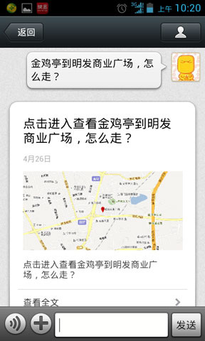 开启此功能,首先要发送地理位置信息,然后输入:步行厦大医院到厦大西村 或 厦大医院到厦大西村怎么走